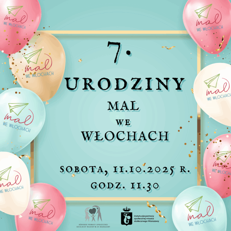 Miejsce Aktywności Lokalnej we Włochach obchodzi w tym roku swoje 7. urodziny. To ważny moment w historii miejsca, które od lat służy mieszkańcom jako przestrzeń spotkań, współpracy i realizacji wspólnych inicjatyw. Z tej okazji serdecznie zapraszamy na uroczystość, która odbędzie się: 📅 sobota, 11 października 2025 r.📍 MAL we Włochach, ul. Rejonowa 6/8, Warszawa⏰ godz. 11:30 W programie przewidziany jest wspólny poczęstunek oraz atrakcje przygotowane przez organizacje i grupy korzystające z przestrzeni MAL. Będzie to doskonała okazja, aby spotkać się w szerszym gronie, porozmawiać i wspólnie świętować kolejną rocznicę działalności naszego Miejsca!